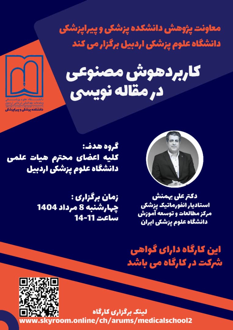 کارگاه هوش مصنوعی در مقاله نویسی ۰۸ مرداد ۱۴۰۴ | ۱۰:۵۰ کد : ۳۸۵۱۱ اخبار تعداد بازدید:۱۲ لینک کارگاه : https://www.skyroom.online/ch/arums/medicalschool2